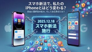 iPhone 【2025年12月18日施行】スマホ新法で、私たちのiPhoneとAndroidはどう変わる?実際に使ってわかったこと 2025年12月18日、つまり今日から「スマホ新法」が施行されました。正式名称は「スマートフォンにおいて利用される特定ソフトウェアに係る競争の促進に関する法律」という長い名前ですが、要するにAppleやGoogleの独占状態を是正して、私た... 2025.12.20 iPhone